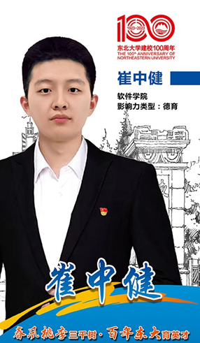 软件工程专业2019级本科生,中共党员。曾任软件学院软件1902班长、东北大学智能基座奇点俱乐部主席、沈阳织知科技有限公司CEO。曾获国家奖学金一次、华为杰出奖学金两次、建龙二等奖学金一次、校一等奖学金两次、校二等奖学金两次;曾获辽宁省优秀本科毕业生、东北大学优秀团干部标兵等荣誉称号;曾获第五届中国青年志愿服务项目大赛全国银奖、2022年“榜样100”全国最佳大学生团队、2022年全国大学生暑期实践项目TOP10、东北大学校报报道、2020年挑战杯辽宁省大学生创业计划竞赛金奖、2022年挑战杯辽宁省大学生创业计划竞赛银奖、连续三年获得中国国际“互联网+”大学生创业大赛辽宁省铜奖。现推免至天津大学攻读硕士研究生。