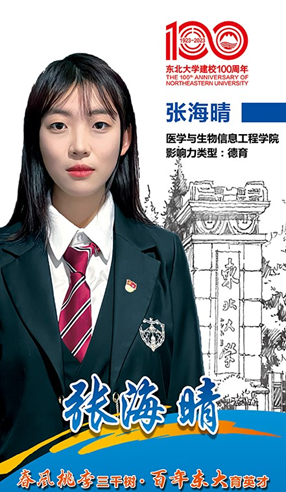 生物医学工程专业2019级本科生,中共党员。曾任2019级年级会团总支、生医1903班团支书、2021级&2022级成长发展指导员。曾获国家奖学金三次、校一等奖学金三次;曾获辽宁省优秀本科毕业生、辽宁省优秀少先队校外辅导员、沈阳市优秀共青团员等荣誉称号;曾获国际大学生数学建模竞赛一等奖、全国大学生生物医学工程创新设计竞赛三等奖等多个奖项;多次参与东北大学招生返校宣讲活动,曾获社会实践优秀个人、优秀社会实践报告;曾多次参加大学生创新项目并完成学术论文,发表高水平论文多篇。志愿时长286小时,事迹曾登曲阜市官网、东北大学小团儿等官方微信公众号推送。现推免至上海交通大学攻读博士研究生。