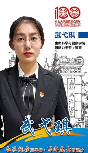 生物工程专业2019级本科生,中共党员。现任年级负责人兼院学办学生助理;曾任班长等职务。绩点连续四年保持专业第一;曾获国家奖学金、校一等奖学金等多项奖学金;曾获辽宁省优秀本科毕业生等荣誉称号;曾获第九届TRIZ杯中国大学生创新方法大赛国家级二等奖、辽宁省大学生生命科学竞赛省级一等奖等多项竞赛奖项;曾参加国家级大学生创新项目并发表学术论文。现推免至中科院生物物理研究所攻读硕士研究生。