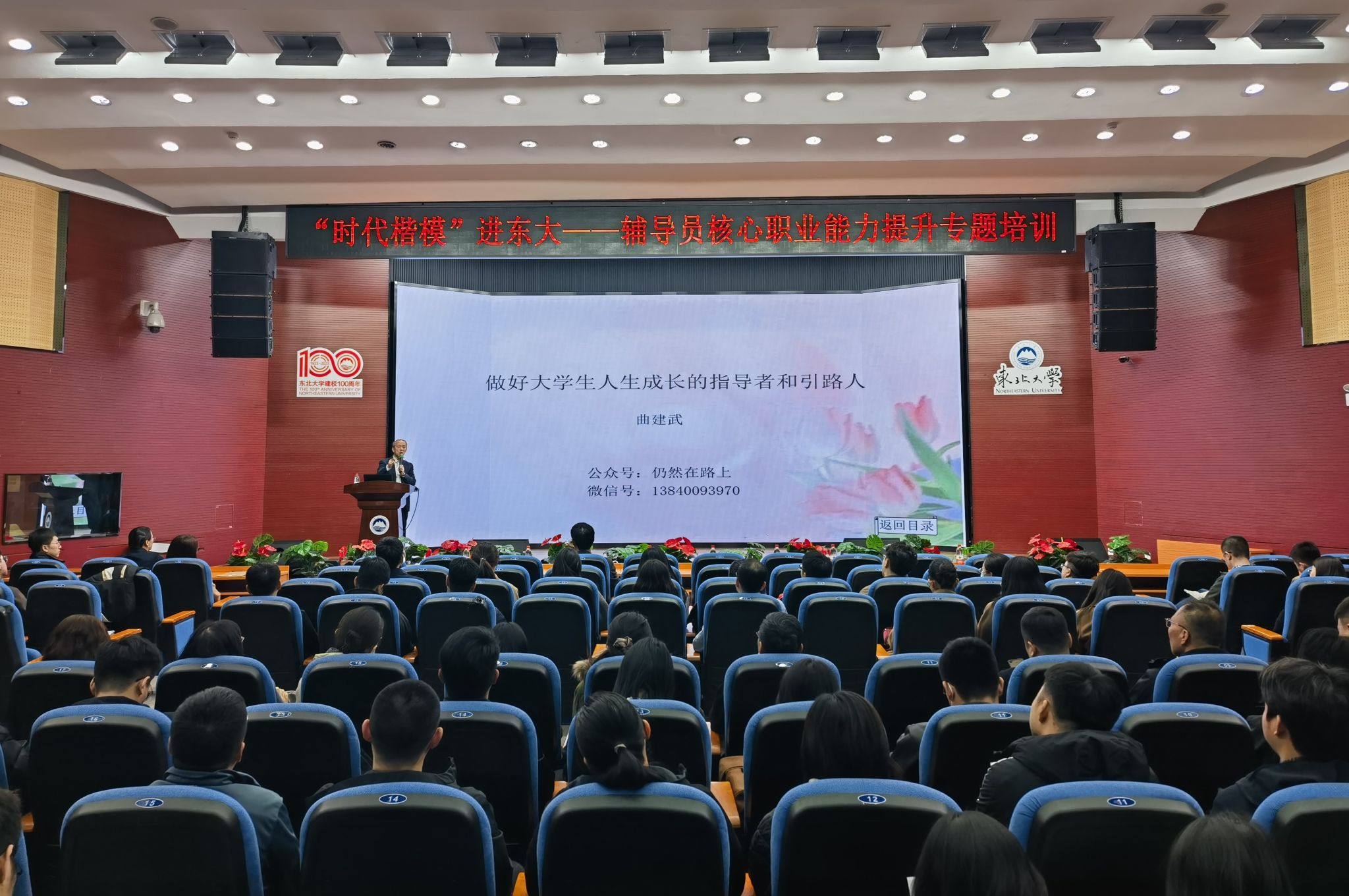 4月1日,“时代楷模”进东大——东北大学辅导员核心职业能力提升专题培训在科学馆建龙学术报告厅举行。“时代楷模”、大连海事大学马克思主义学院二级教授曲建武应邀来校作专题报告,东北大学学生工作相关职能部门负责人及全体学生工作干部参加培训。