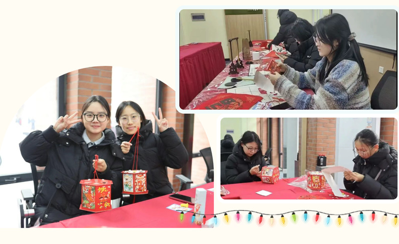 从骨架拼接、灯面固定到纹饰粘贴,每一步都凝聚着创意和匠心!大家互帮互助分享技巧,一只只灵动的醒狮灯笼新鲜出炉!“第一次做灯笼!旁边的学姐教我怎么粘纹饰,成品超有成就感!”一位同学举着自己的灯笼笑得眼睛都弯了!