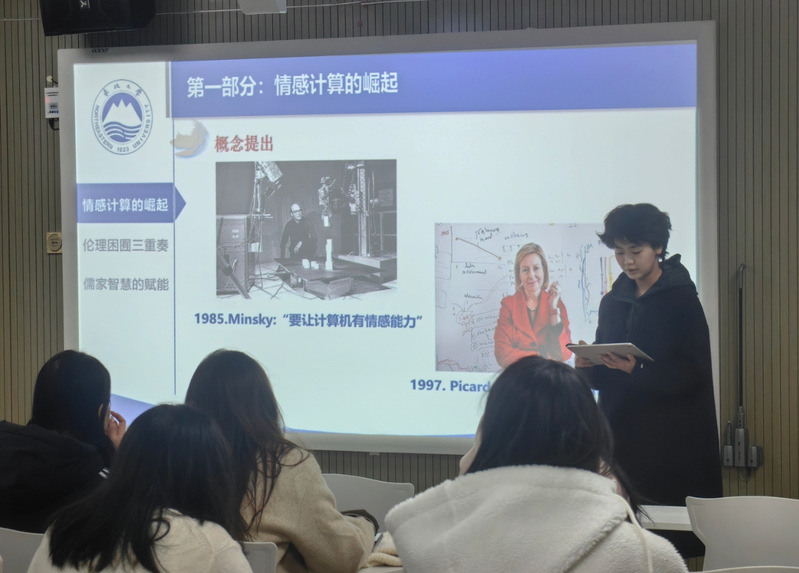 首场沙龙以“技近乎道:前沿科技与哲思问道”为主题,邀请保研北京大学的东北大学马克思主义学院大四学生崔续丹带大家探索AI时代的伦理边界。她系统梳理情感计算的起源与风险,提出用儒家伦理解决问题的“仁、礼、行”三步走方案,让“以人导技、以文化育技”的理念深入人心——原来拥抱科技进步,也能守住人文底线!此外,还分享了自己保研北京大学的学习经历,从如何高效规划时间平衡专业学习与科研实践,到怎样精准定位目标院校、精心打磨申请材料,再到面试中如何清晰表达学术见解与个人优势,崔续丹都毫无保留地倾囊相授。她特别强调,保研之路绝非一蹴而就的坦途,而是需要长期积累的厚积薄发,鼓励同学们在日常学习中既要夯实专业基础,也要积极参与各类学术交流活动,拓宽学术视野,为未来的深造之路提前做好充足准备。